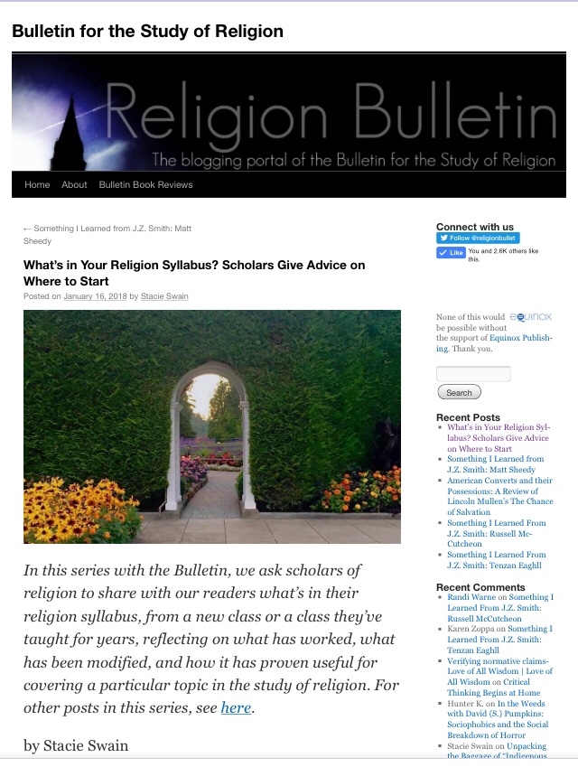 Over at the blog for the Bulletin for the Study of Religion, Stacie Swain has done the important work of interrogating the construction of the syllabus.