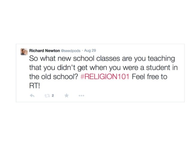 On August 29, 2014, members of the Society of Biblical Literature and the American Academy of Religion shared tweets on what they had been taught as students and what they are teaching now as professors. Thanks to everybody who was a part of it. And a special thanks to the Forum for Theological Exploration, Seminarium, and the … Continue reading Teaching Religion 101 –The Old School and the New School